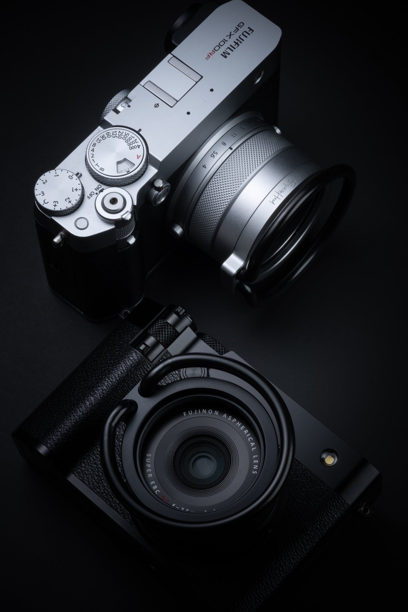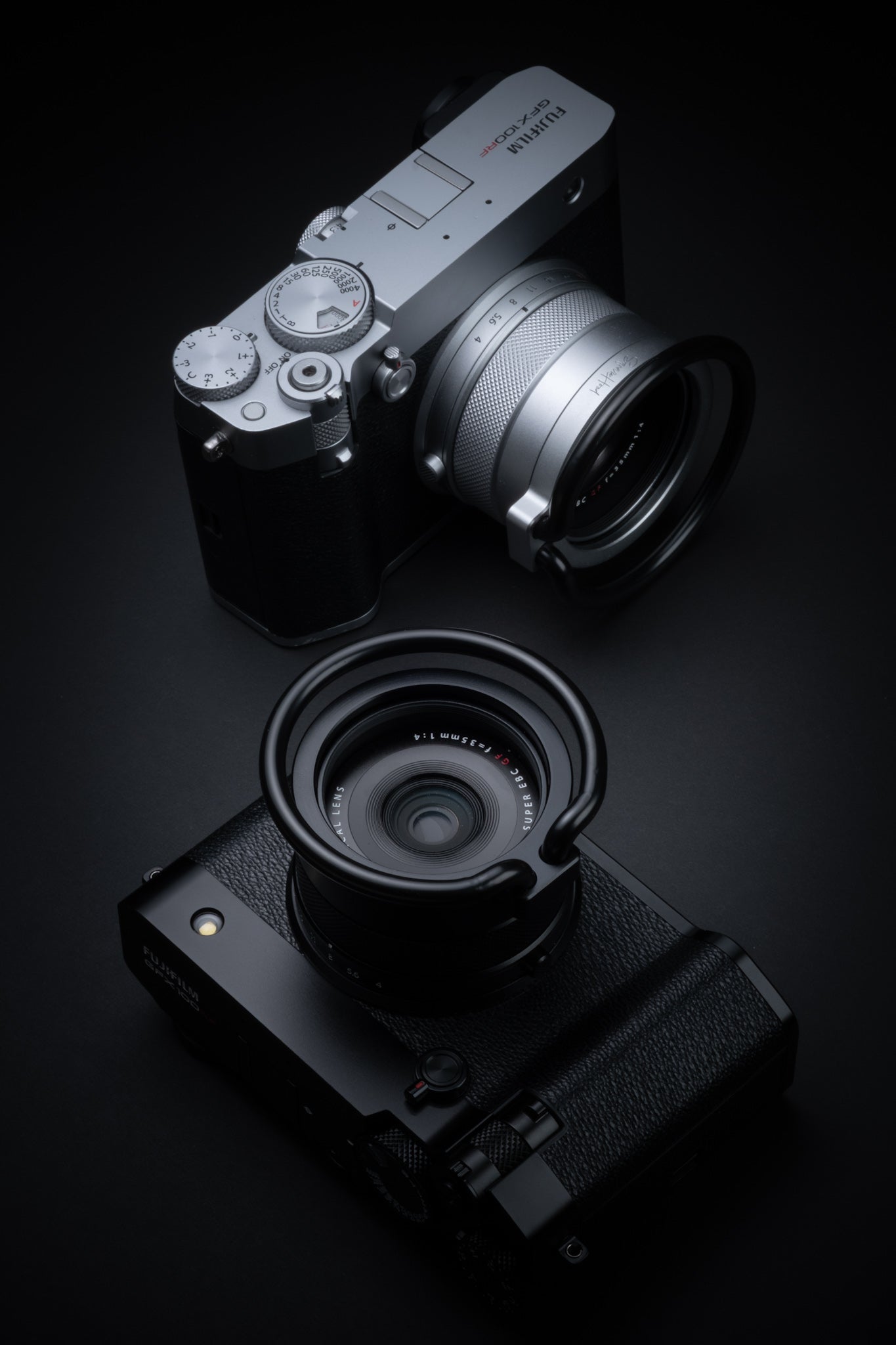 We took inspiration from the fuji gs645s and designed a similar looking circular bracket to protect the lens from knocks and falls.