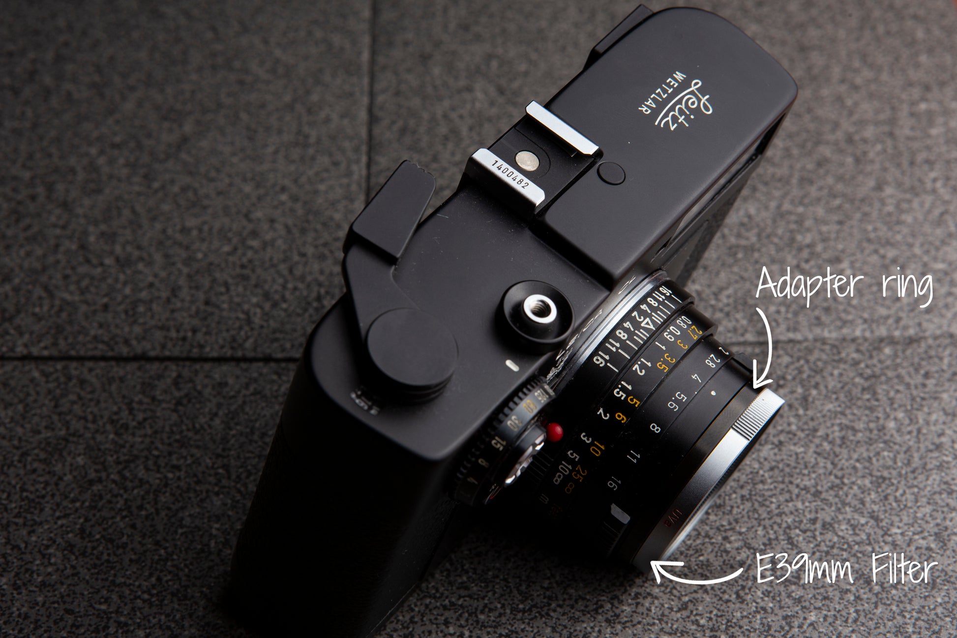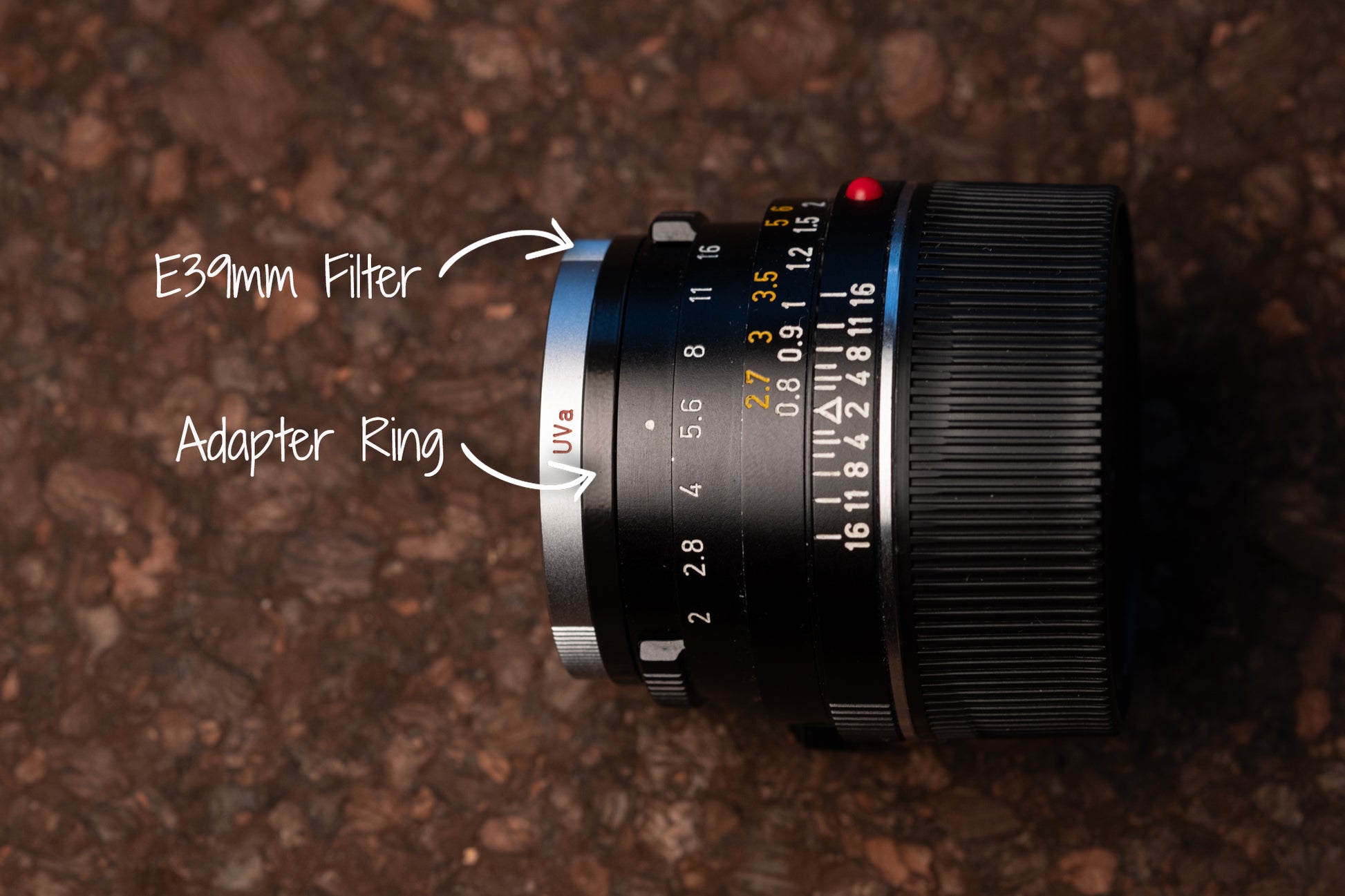 Our adapter ring screws into the 40mm lens and then accepts a E39mm filter, meaning you can use your standard filters with this lens.